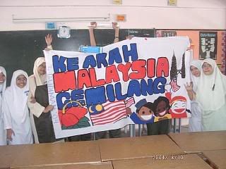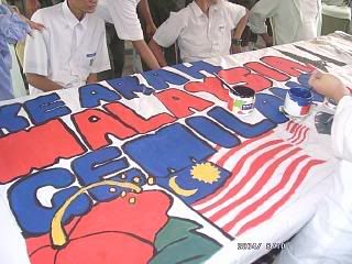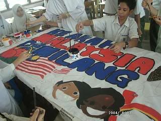 Another layout again... but thistimeI'm gonna keep itthis way coz it's ad-free, you see... Oh yeah, a coupleof days ago, my school had a banner-drawing competition. Since the original designer for my class was absent and normally, I was pickedto fill in her position. It was nice tho' working together as a group and all... here, have some pictures: